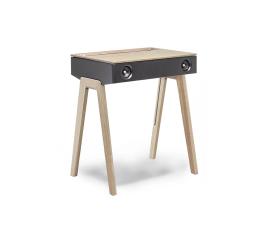 Presotto Table de bureau originale avec base de rangement sur quatre roulettes et plan de travail à hauteur réglable de 740 à 120 mm au moyen d'un piston à gaz actionné par une poignée placée sous le plateau