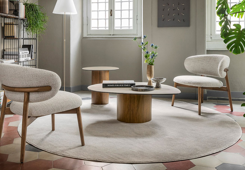 Avec sa structure en bois et ses deux éléments rembourrés volumineux, la chaise longue Oleandro est l’assise idéale pour relier la salle à manger au salon. Confortable, douce et enveloppante, elle fait écho au dossier aplati caractéristique qui a fait le succès de la chaise homonyme.