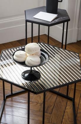 RENEE, une collection de tables basses disponibles en différentes formes géométriques, dimensions et hauteurs. Les plateaux, hexagonaux et carrés, sont proposés en verre miroir avec un agréable effet de vagues ou en céramique. Le dessin de ce modèle propose un compromis équilibré entre lignes minimalistes et le raffinement que rendent ces tables facilement adaptables à toutes les exigences